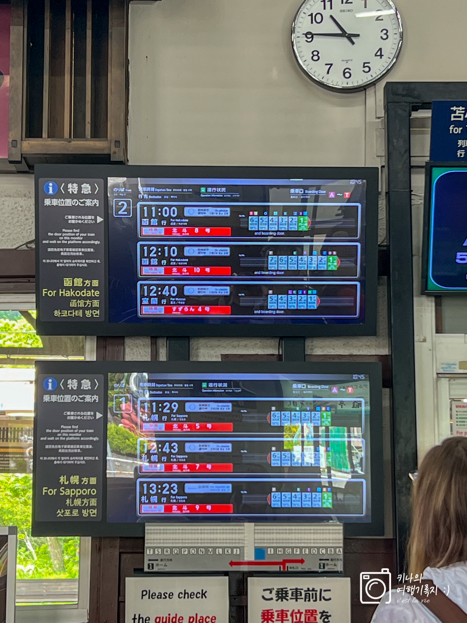 노보리베츠역은 작지만, 바로 역 벽면에 저렇게 큼직하게 열차 시간과 행선지를 볼수가 있고