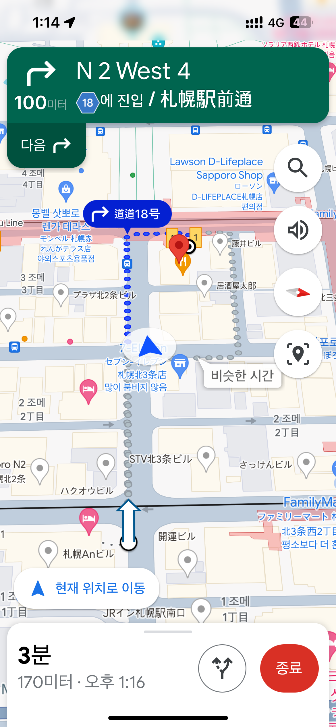 그래서 사실 삿포로도 오후쯤 도착하지않을까 싶었는데 더 일찍 가게되었다.